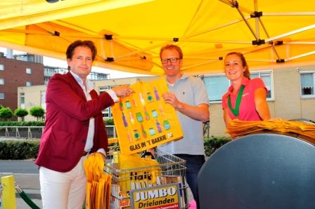 Wethouder Jeroen de Jong gaf de glasbrengers bij Drielanden een pluim. Een goed initiatief, vindt hij, om aandacht te besteden aan glasinzameling: “Veel mensen denken dat iedere Nederlander al zijn glas naar de glasbak brengt. Toch verdwijnt er nog steeds 150 miljoen kilo in het restafval, tegen 350 miljoen kilo in de glasbak. De Harderwijkers brengen ieder jaar ongeveer 18 kilo glas per persoon naar de glasbak. Dat zou eigenlijk minimaal 24 kilo moeten zijn. Glas kun je eindeloos blijven recyclen, en het bespaart veel energie. Goed voor het milieu en dus goed voor iedereen.”